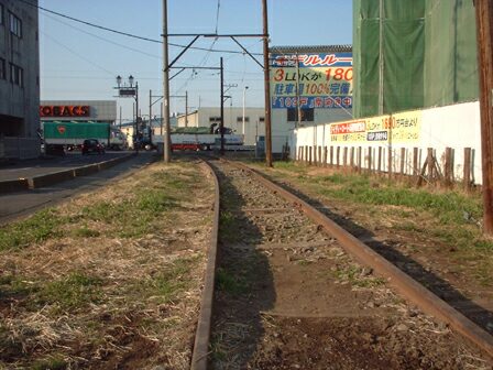 踏み切りはセメントやアスファルトで固められ、所々でしか線路が分かりません。