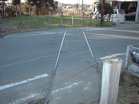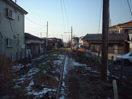 道路に埋もれた線路。