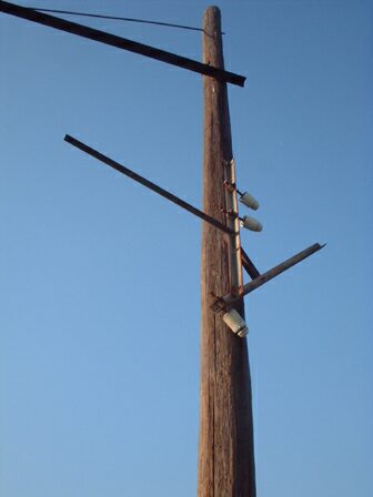 ここら辺の架線柱から配電線支持碍子と腕金を見ることができますが、