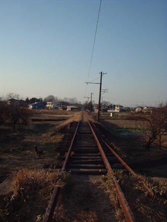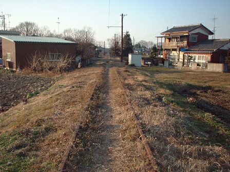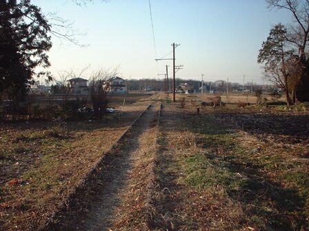 付近は地盤が軟弱な水田地帯なので、安比奈線の線路はやや盛土しています。