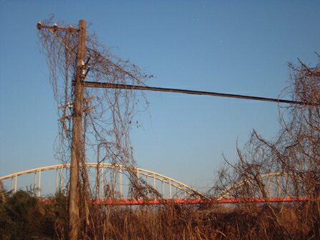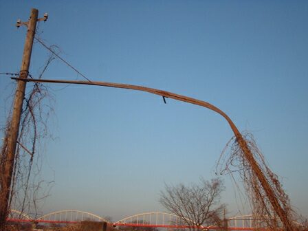 架線柱はき電線・配電線・吊架線何れも撤去されてありません。