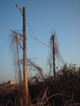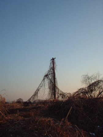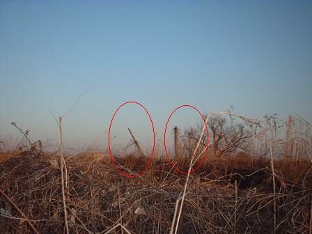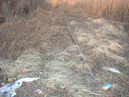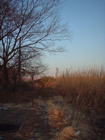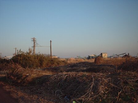 架線柱の下はこのように荒地です。所々重機で掘ったあとがあります。