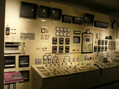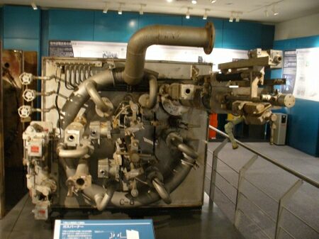 史料館には実物大の火力発電所のボイラー盤が展示されています。