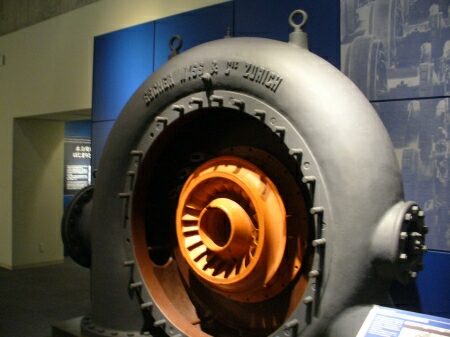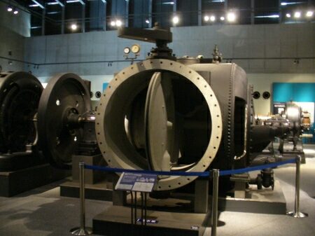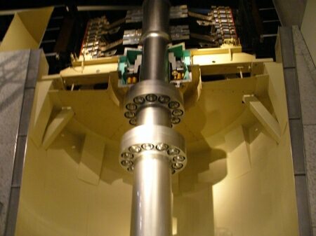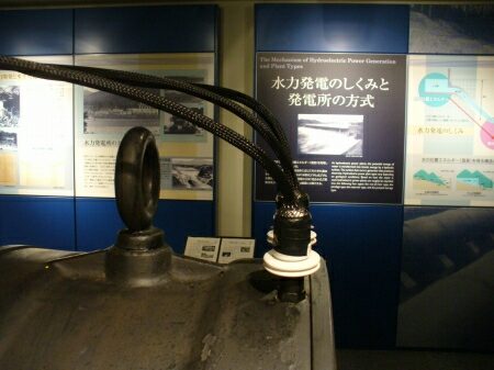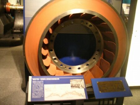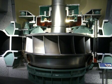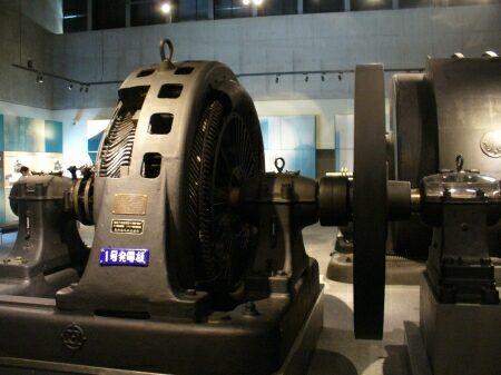 信濃川水力発電所で使われていた縦軸フランシス水車発電機です。