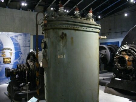 この特別高圧変圧器は日本最古(1910年製)らしいです。