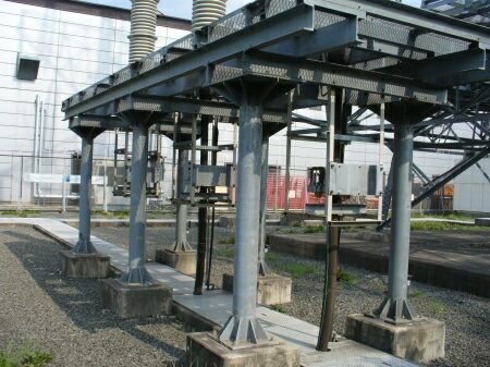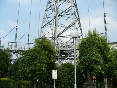 東京電力の技術開発本部の敷地北西側で川崎火力線を引き下げています。