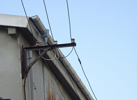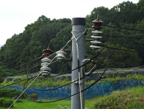 何れも低圧線を引留碍子または多溝碍子をコの字金物で取り付けています。