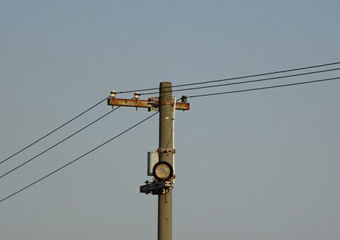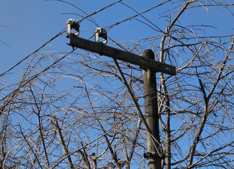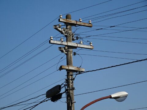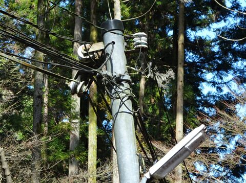 単相三線と単相二線が入り乱れている低圧配電線です。