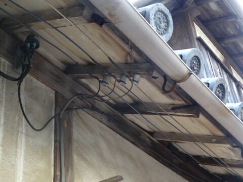 違和感があるのは、すべてをコの字金物一つで支持している所です。