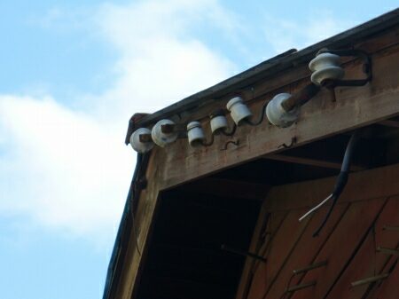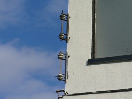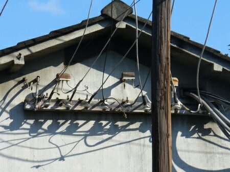 この建物付いている低圧碍子に繋がっていたのだと思います。