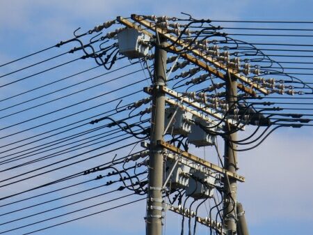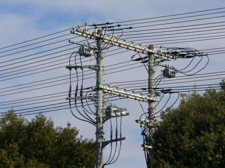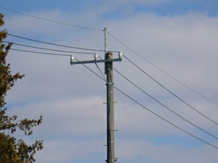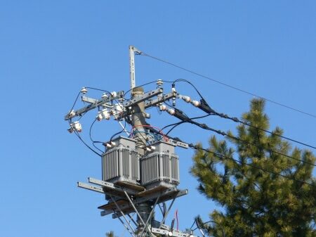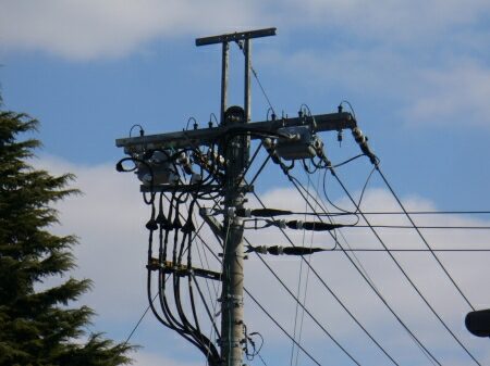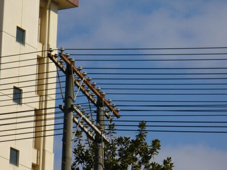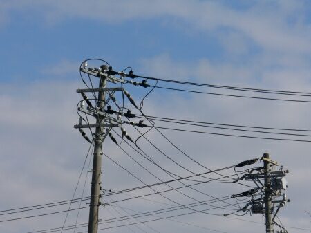 この配電線柱の下の2回線は開閉器の先で電線が切られています。