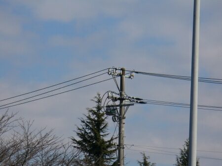 ここも最初の写真の配電線柱と同じように三相から単相を取り出して接続しています。