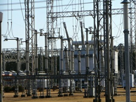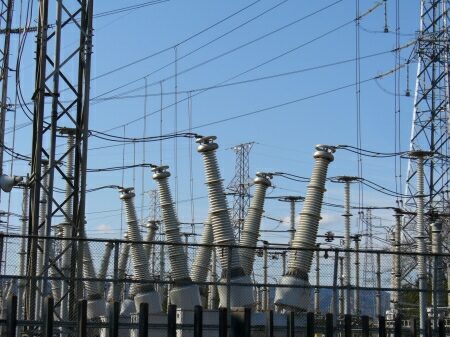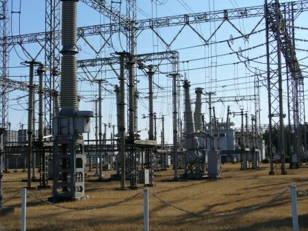 変電所中央部にはコンデンサと直列リアクトルがあります。