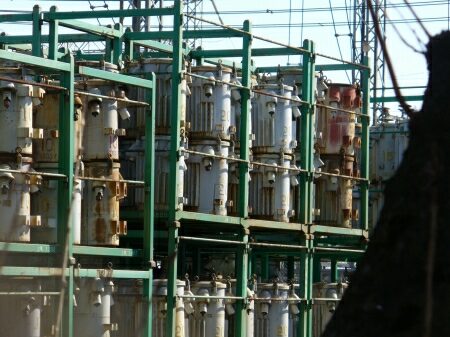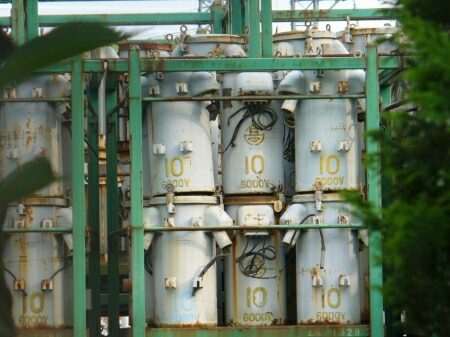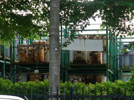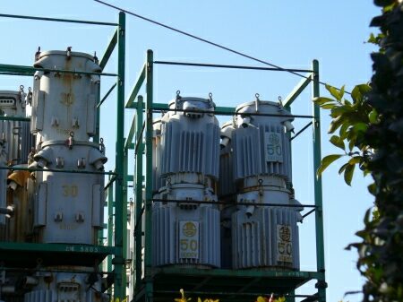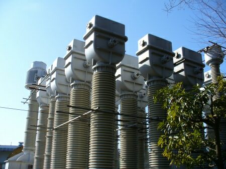 日新電機のロゴが見えるのでコンデンサかと思います。