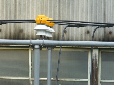 碍子はクランプ部分に黄色いカバーを被せています。