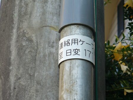 引き下げ線の電線管には「連絡用ケーブル」と書かれています。