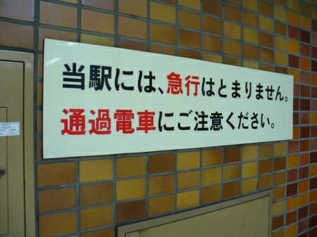 急行通過駅は通過電車の注意を促す表示があります。