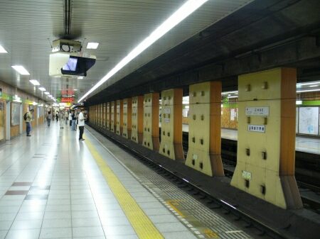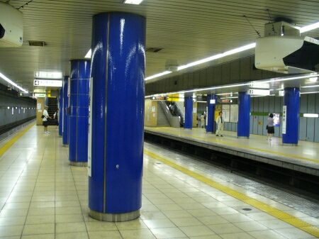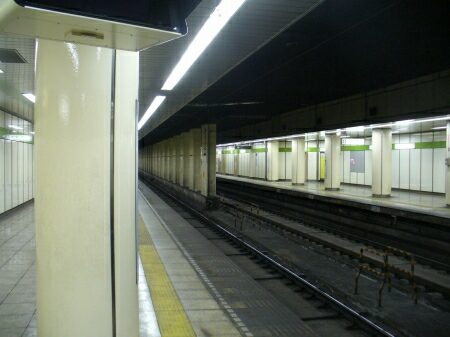 神保町駅は西行東行ホームの間にある柱がユニークです。