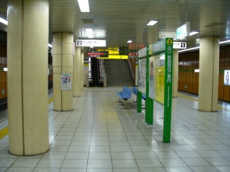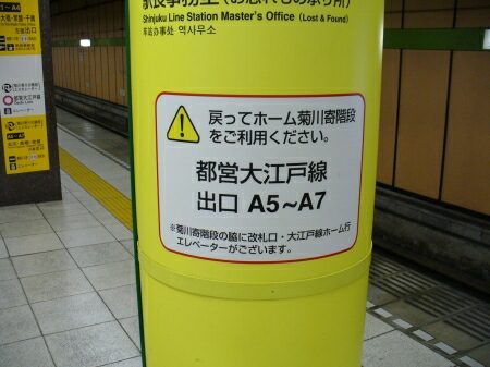 大江戸線の乗り換えは菊川駅よりの階段です。