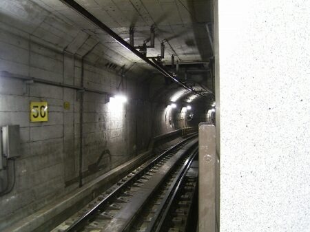 駅間はシールドトンネルが続きます。