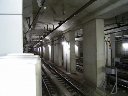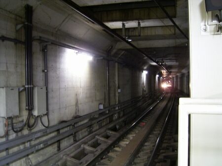都庁前駅を出ると、飯田橋駅方面の線路と分かれます。