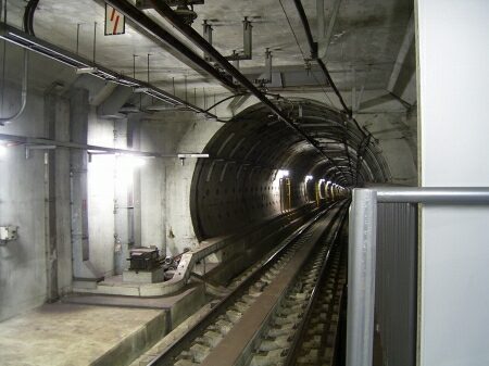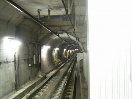 シールドトンネルで行きます。