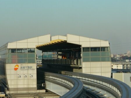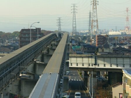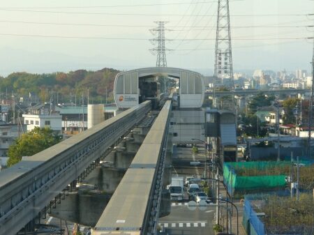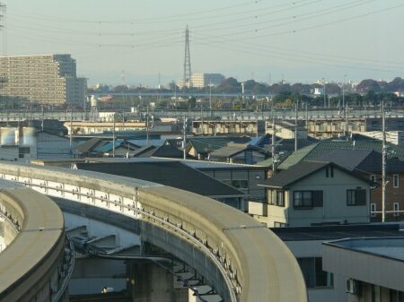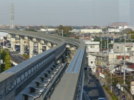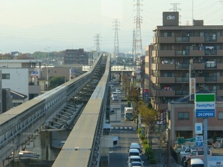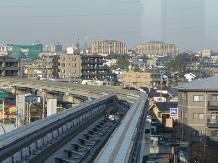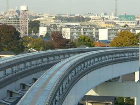 多摩都市モノレールは時速60kmでのんびり走っています。
