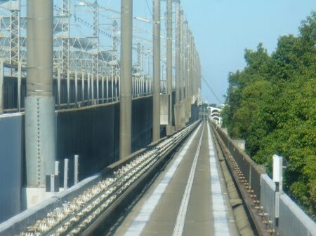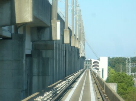 だんだん新幹線の高架橋の高さが低くなってきます。