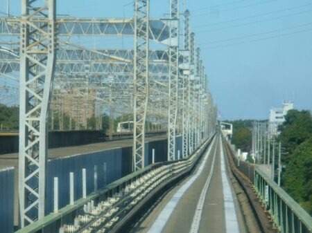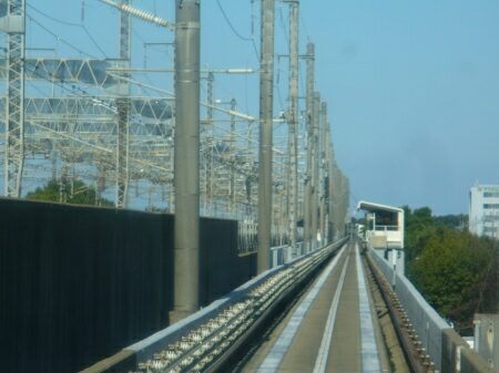 まだ、新幹線の変電所の鉄塔と、電線が見えます。