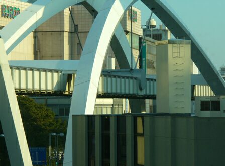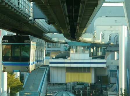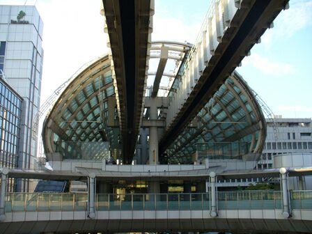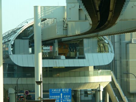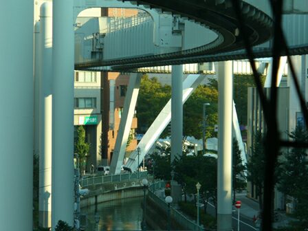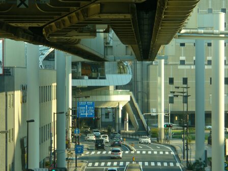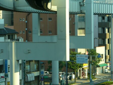 アーチ状の独特なモノレールの支柱のところで大通りと交差します。