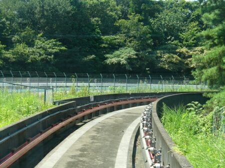 練習用球場をぐるっと回るようにカーブを曲がります。