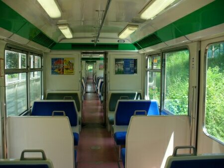 車内です。多客時はかなり混雑し、狭苦しいですが、