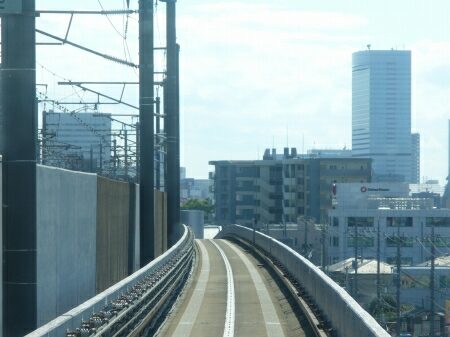 NTTの建物を避けるために一部徐行区間になっていますが、