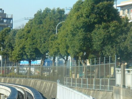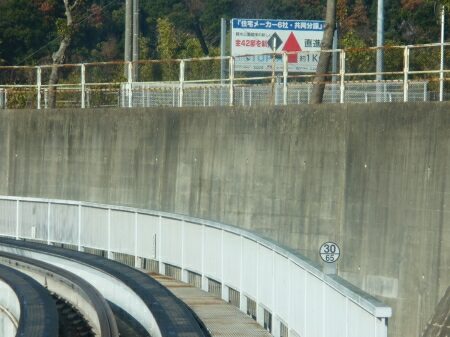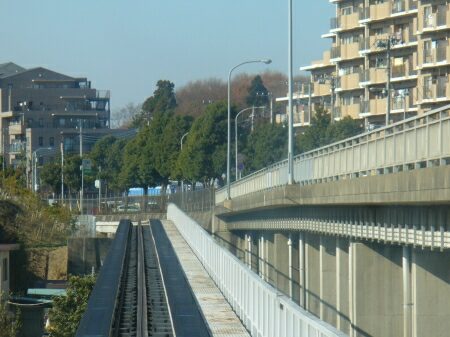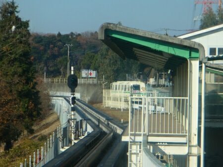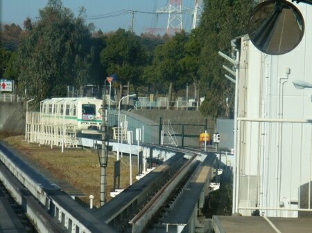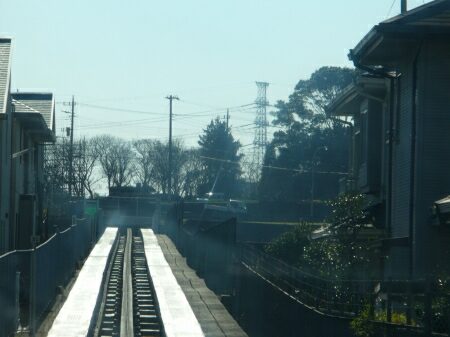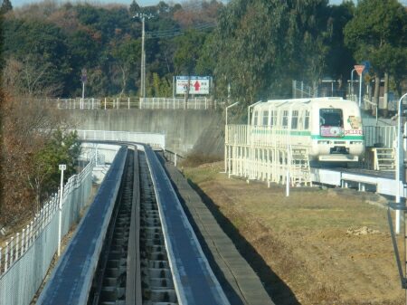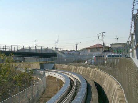 女子大駅を出ると、山万ユーカリが丘線の車庫への線が分岐します。