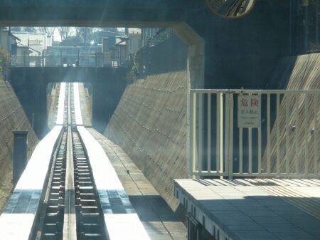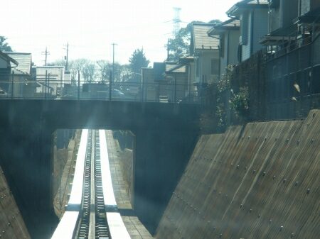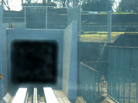 勾配をのぼりきると、山万ユーカリが丘線唯一のトンネルになります。