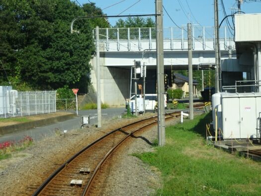 遮断機も警報器もない踏切を通ります。