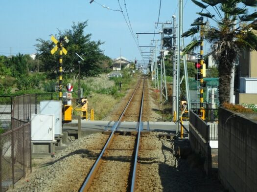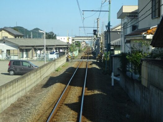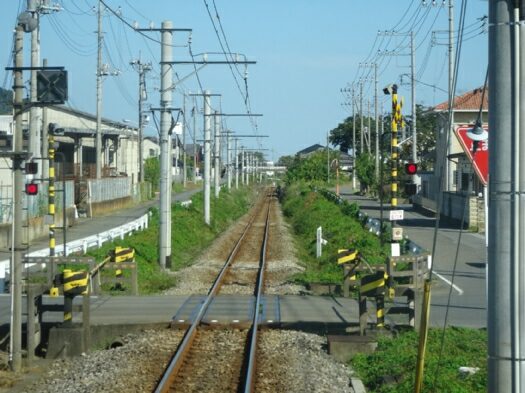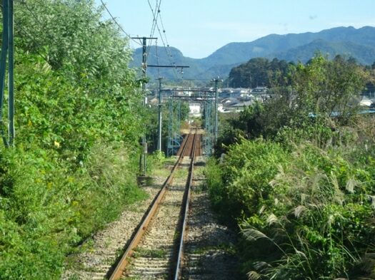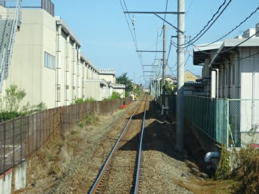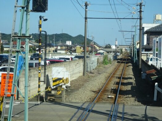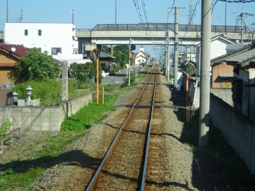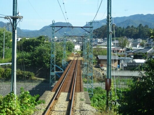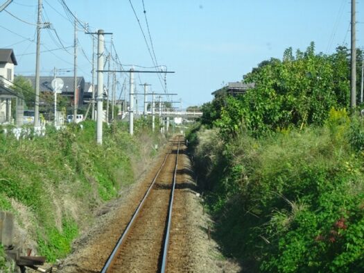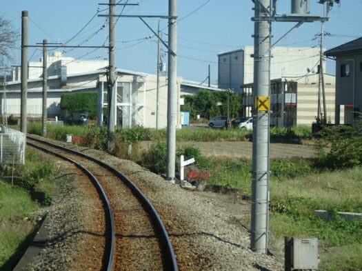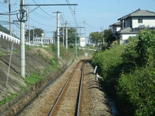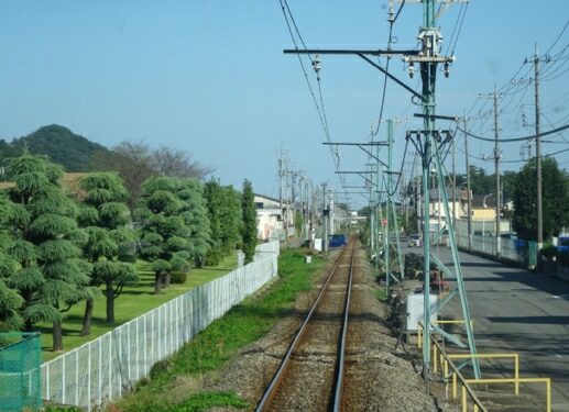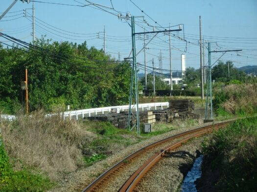 (現在、旧線路用地は道路になってしまい、架線柱は撤去されています。)
