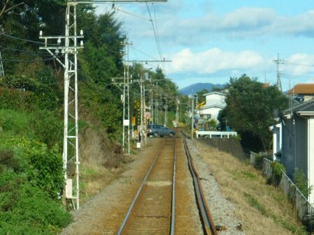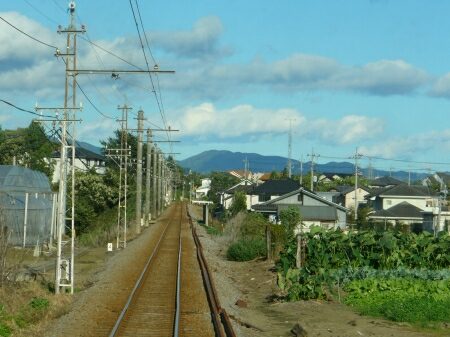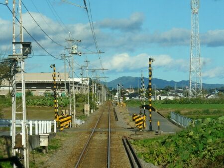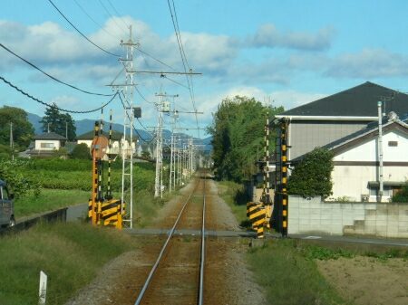 大胡駅を出ると荒砥川を渡り、「かくん」と線路を左にふります。
