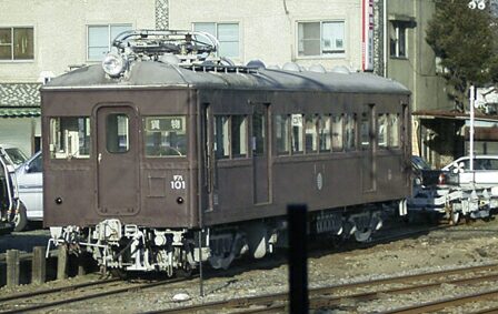大胡駅の留置線の端には名車デハ101形電車がとまっていました。