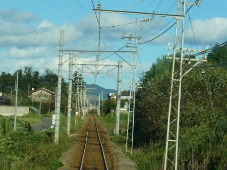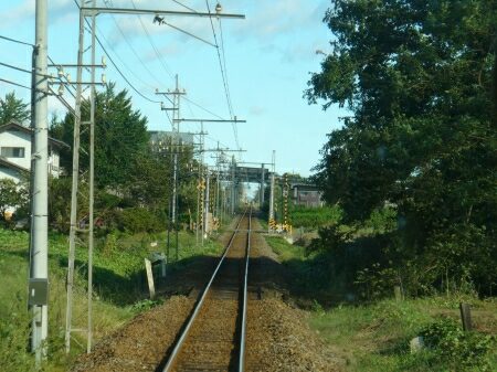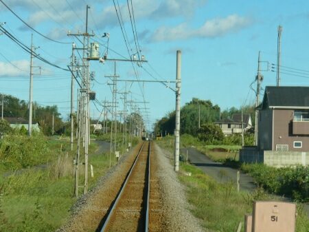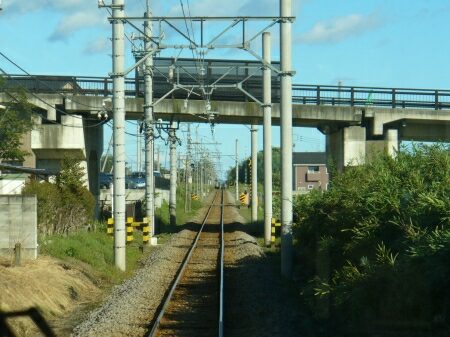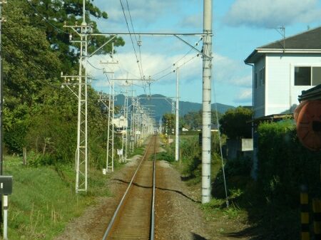新屋駅を出ます。次の粕川まで直線です。