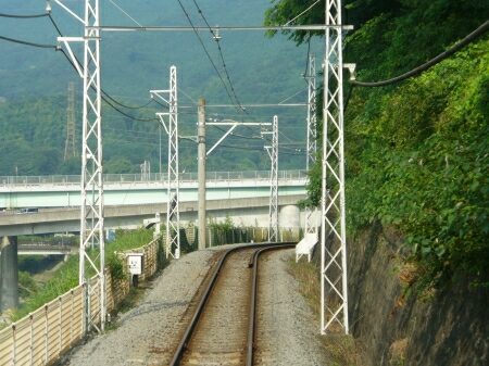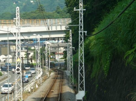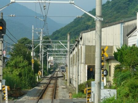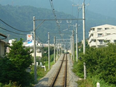 風祭駅を出ると民家の中を走ります。