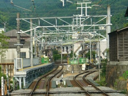 現在は相対式2線にして4両編成分のホームに改良しています。
