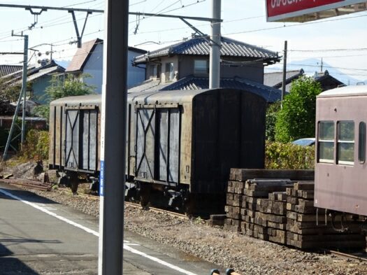 上州福島駅の留置側線には使われていない貨車が留置されていました。