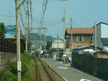 線路敷と道路の間に柵がないので、路面区間のようです。