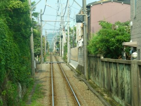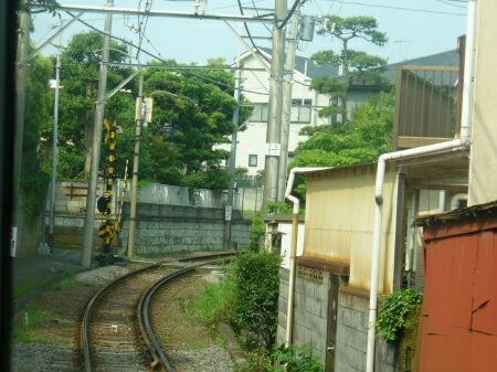 カーブを曲がり、JR横須賀線の築堤の横を走ると終点鎌倉駅です。