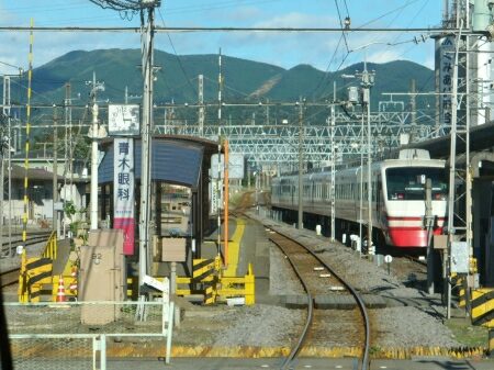 東武桐生線との乗換駅、赤城駅に到着します。