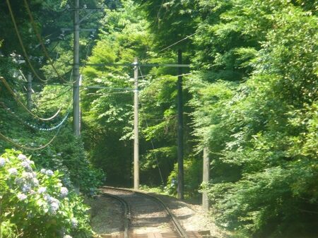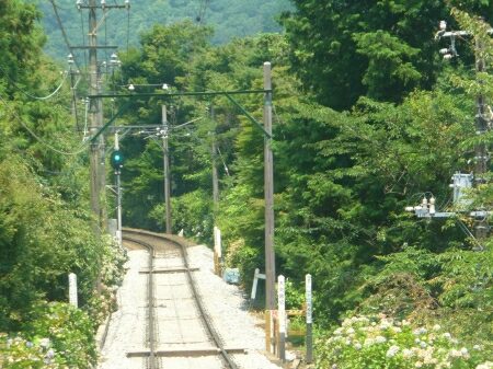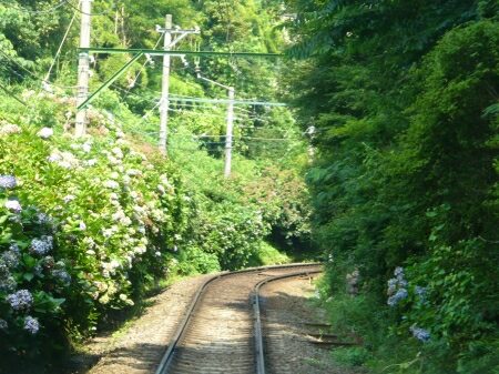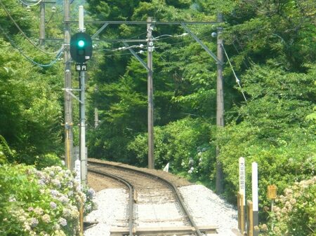 梅雨頃は沿線に紫陽花が咲き乱れます。