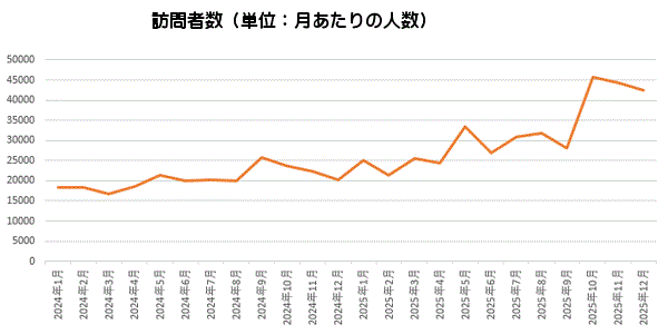 訪問者数はおかげさまでだいたい右肩上がりに増えています。