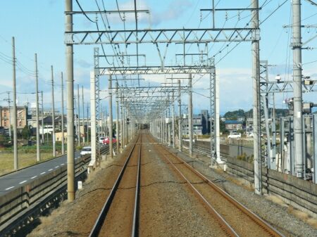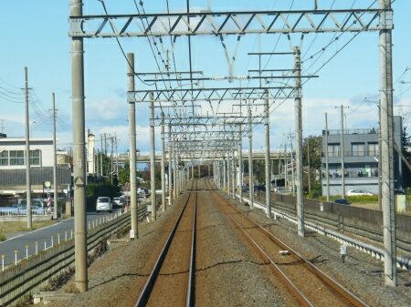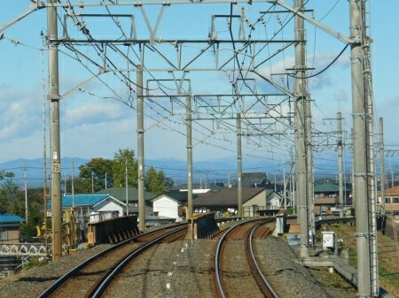 南栗橋駅を出ます。南栗橋車両管区への線路が分かれます。