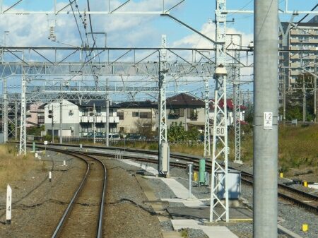 連絡線の架線はデッドセクションになっていて、き電区分が分かれています。